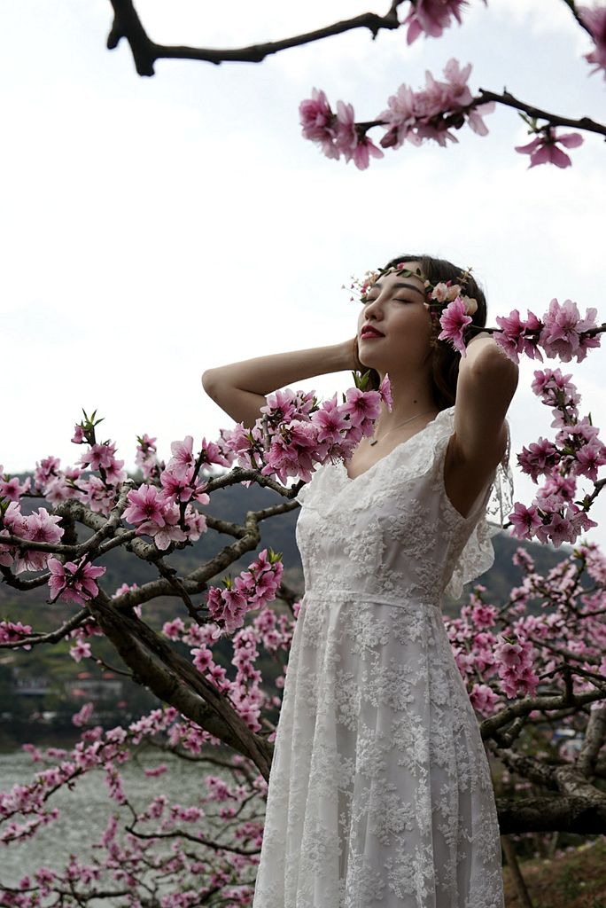宝狮湖畔桃花点倩影